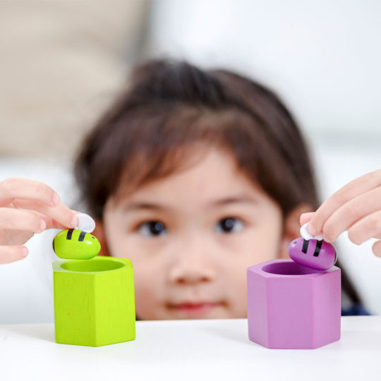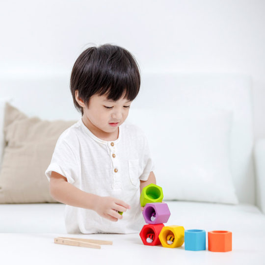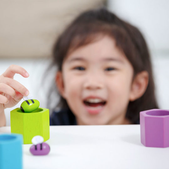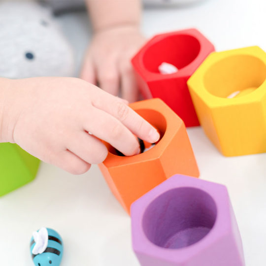 Το παιχνίδι αυτό βοηθά στην ανάπτυξη της λεπτής κινητικότητας. Το παιδί ταιριάζει κάθε μια μέλισσα με την αντίστοιχη κυψέλη, χρησιμοποιώντας τη λαβίδα. Επίσης, ενισχύει την αναγνώριση χρωμάτων και το μέτρημα.