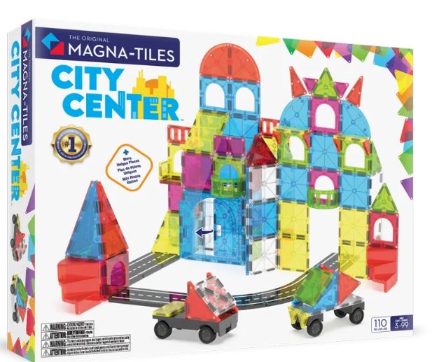 Το MAGNA-TILES City Center 110-Piece Set είναι το απόλυτο σετ για όσους θέλουν να δημιουργήσουν μια πλήρη μαγνητική πόλη γεμάτη φαντασία, δράση και περιπέτεια. Με 110 ποιοτικά μαγνητικά κομμάτια, φιλοξενεί δρόμους, κτίρια, σπειροειδείς σκάλες, μπαλκόνια, πλατφόρμες, ακόμη και βάση για όχημα — δίνοντας στα παιδιά όλα όσα χρειάζονται για αμέτρητες ιστορίες στο κέντρο της πόλης τους.