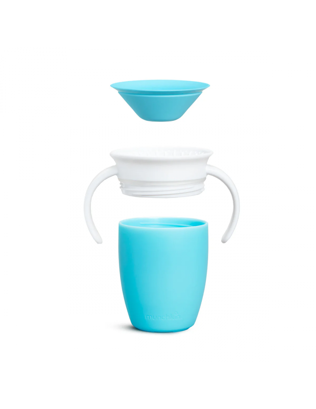 Η αλήθεια να λέγεται: τα μικρά παιδιά λερώνουν πολύ, ειδικά όταν αρχίζουν να πίνουν από ποτήρι. Φανταστείτε έναν κόσμο χωρίς λεκέδες από υγρά – ούτε στην τσάντα σας, ούτε στο κομοδίνο, ούτε καν στα ρούχα του παιδιού σας. Δεν είναι ακριβώς θαύμα… Είναι το ΒΡΑΒΕΥΜΕΝΟ εκπαιδευτικό ποτήρι Miracle 360° της Munchkin. Το πρώτο ποτήρι που σχεδιάστηκε με επίκεντρο τόσο τους γονείς όσο και τα παιδιά: το εκπαιδευτικό ποτήρι Miracle 360° εξαλείφει τους λεκέδες και συμβάλλει ταυτόχρονα στην οδοντική υγεία των παιδιών. Επειδή το παιδί μπορεί να πίνει από όλη την περίμετρο, όπως από τα κανονικά ποτήρια, υποστηρίζεται η φυσιολογική ανάπτυξη των μυών στο στόμα του παιδιού. Και χωρίς επιπλέον στόμια, καλαμάκια ή άλλα τεμάχια, το εκπαιδευτικό ποτήρι Miracle 360° είναι πολύ εύχρηστο και καθαρίζεται εύκολα. Στην υγειά σας, λοιπόν!