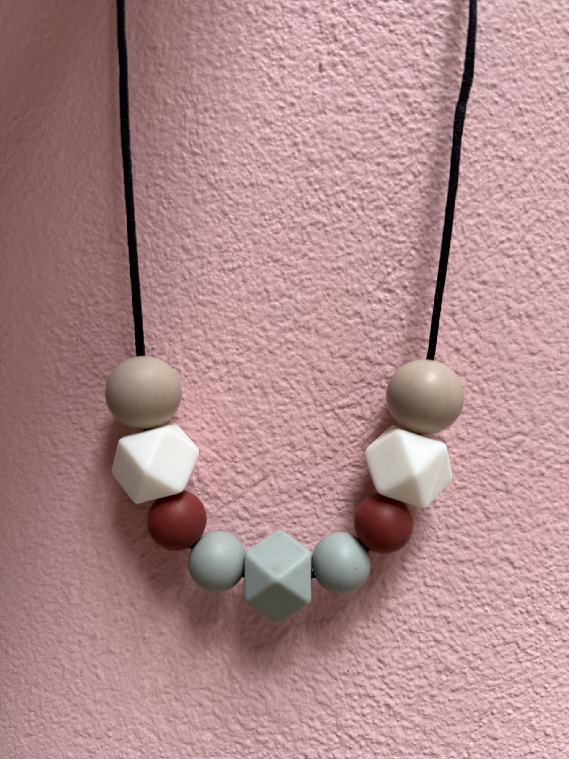 Να φοράς τα αγαπημένα σου κολιέ με μωρό είναι δύσκολο, ειδικά όταν τα μικροσκοπικά χεράκια θέλουν να πιάσουν, να τραβήξουν και να μασήσουν τα πάντα. Όμως, πως σου φαίνεται ένα κολιέ που ταιριάζει στις αποχρώσεις που συνηθίζεις να φοράς και ταυτόχρονα είναι ασφαλές και διασκεδαστικό για το μωρό σου..