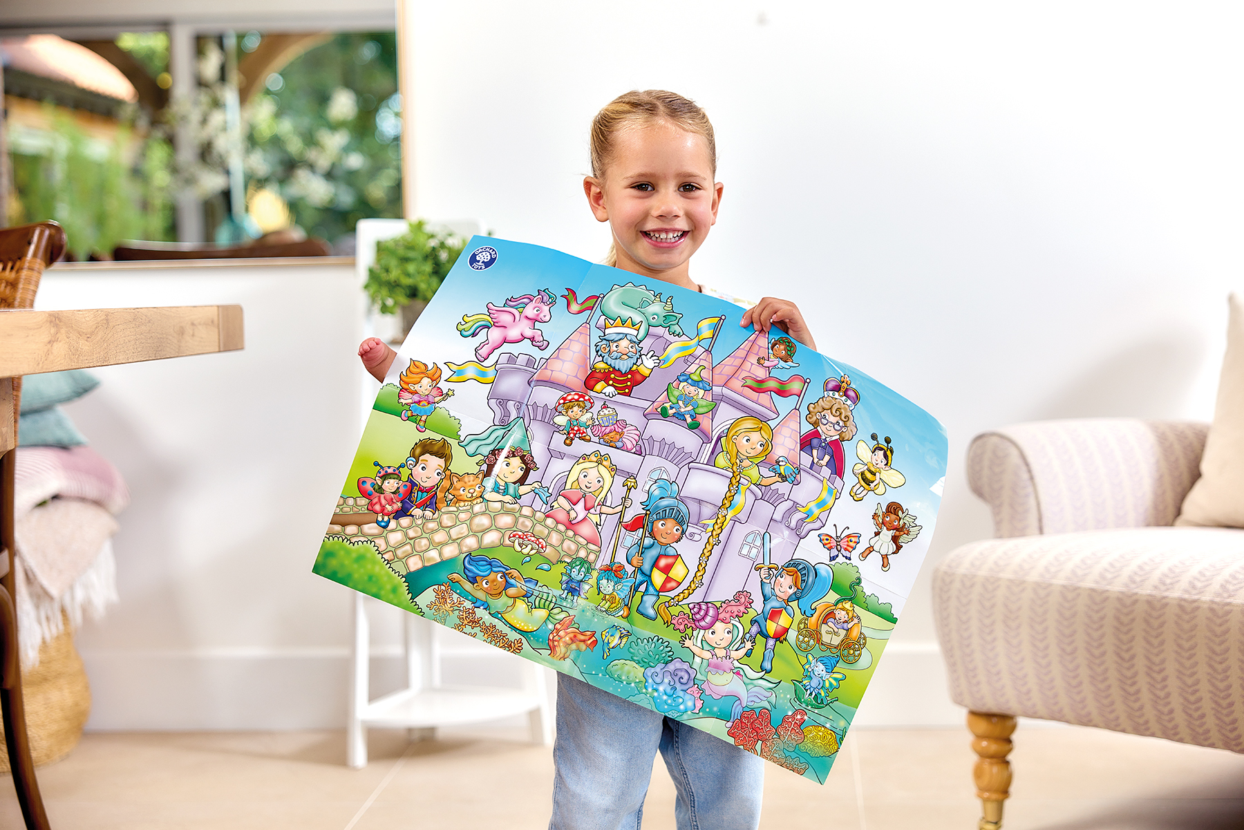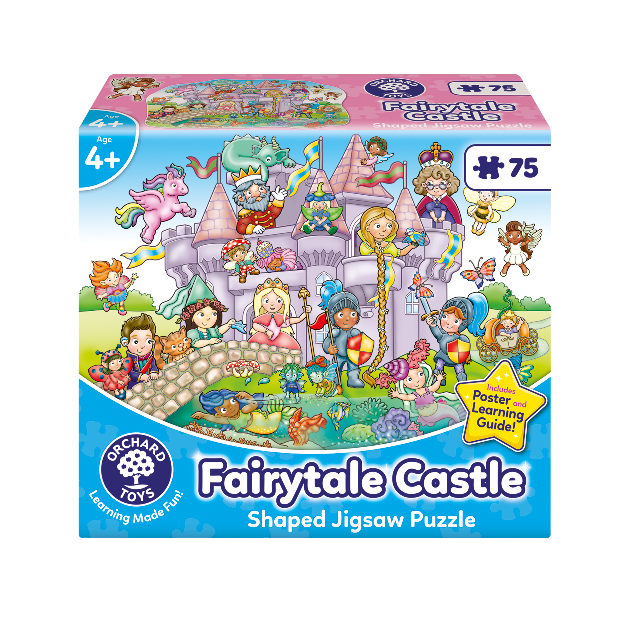 Δημιουργήστε τη δική σας παραμυθένια περιπέτεια με το Fairytale Castle, ένα 75-κομματιών παζλ με πολύχρωμο σκηνικό κάστρου, νεράιδες, ιππότες, βασιλιάδες και πριγκίπισσες. Ιδανικό για παιδιά από 4 ετών και άνω, προσφέρει ώρες δημιουργικής διασκέδασης.- Τα παιδιά τοποθετούν τα κομμάτια παζλ στο πάτωμα για να ολοκληρώσουν τη σκηνή του κάστρου.