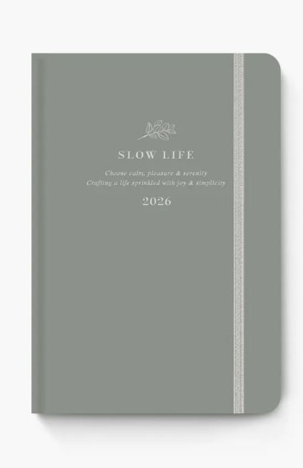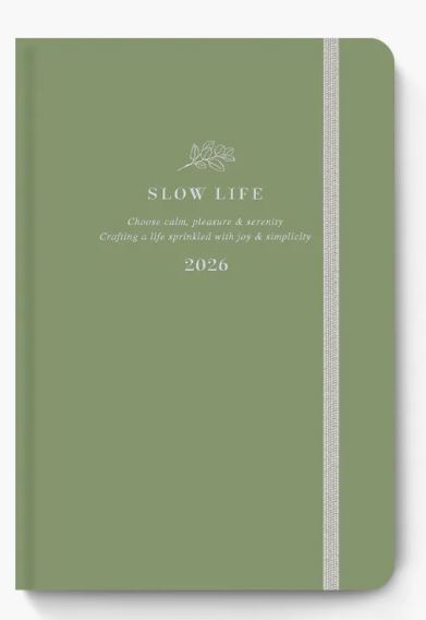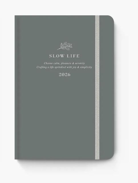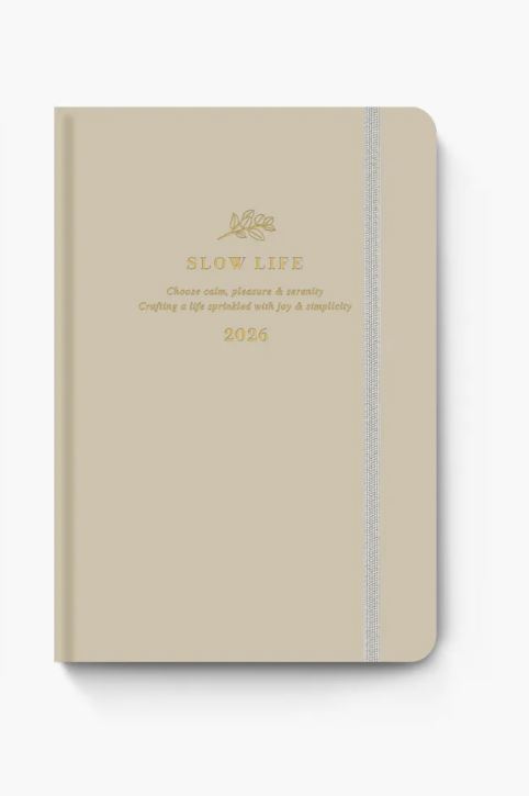 Ημερήσιο ημερολόγιο 2026 αφιερωμένο στην τέχνη της αργής ζωής. Με μίνιμαλ σχεδιασμό, κλασική βιβλιοδεσία , σκληρό κάλυμμα και λεπτομέρειες μεταλλικής θερμοτυπίας στο εξώφυλλο.