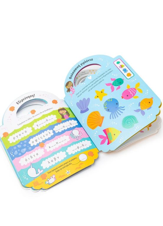 Τρέξε ανάμεσα σε θαλάσσιους λαβύρινθους, ψάξε για χαμένους θησαυρούς και λύσε τα μυστήρια της θάλασσας με τις γοργόνες σ’ αυτό το φανταστικό βιβλίο δραστηριοτήτων.